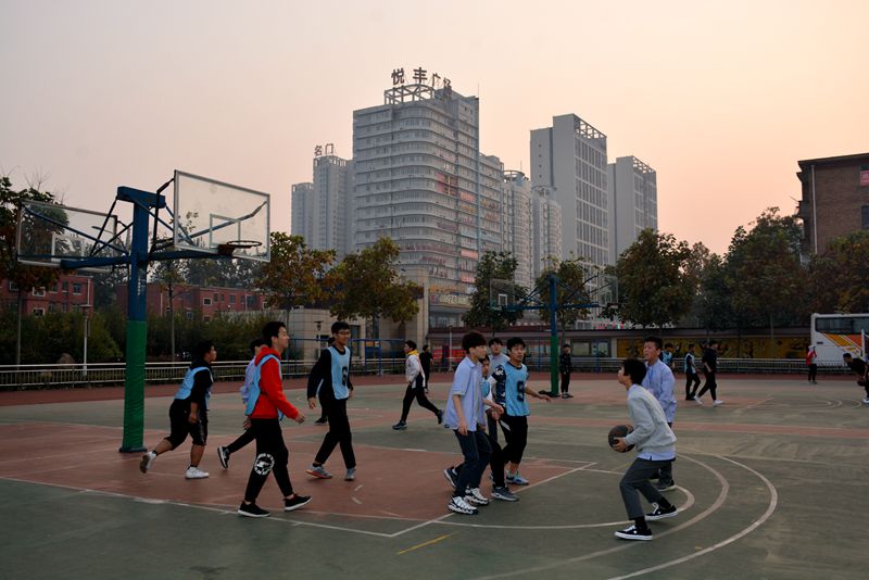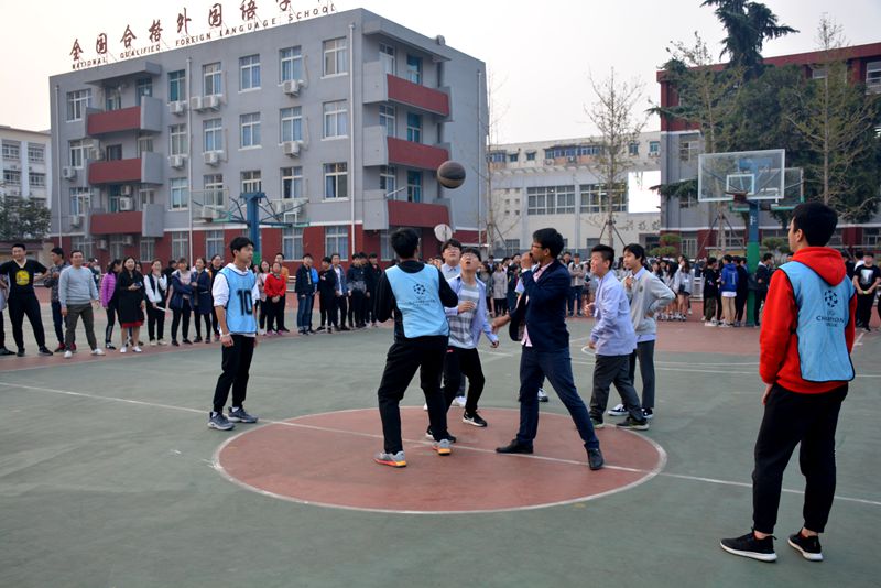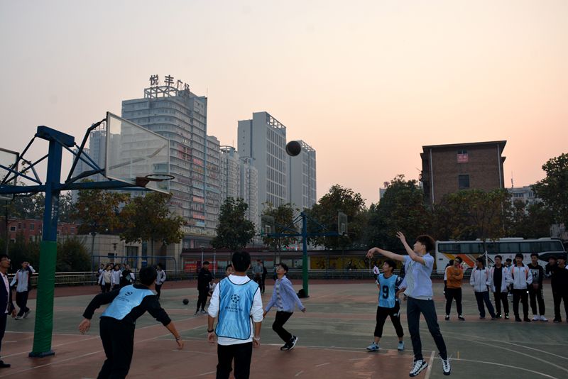 随后,中韩中学生进行了篮球友谊赛,赛场上队员们奋力拼搏,球场周围的学生也主动与自己的partner尽情交流。