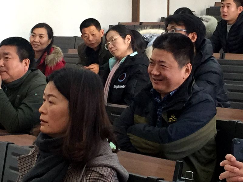 950分,老师们已经济济一堂,静待直播开始。党委书记、校长齐振富同志前排就坐,带领老师们认真观看。