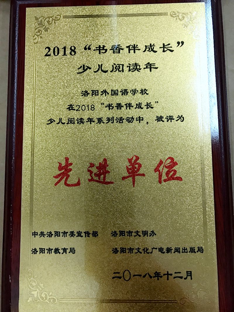 201812202018“书香伴成长”少儿阅读年系列活动颁奖晚会在洛阳广播电视台成功举办,洛阳外国语学校被评为“书香伴成长”少儿阅读年系列活动先进单位。