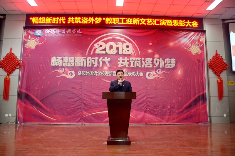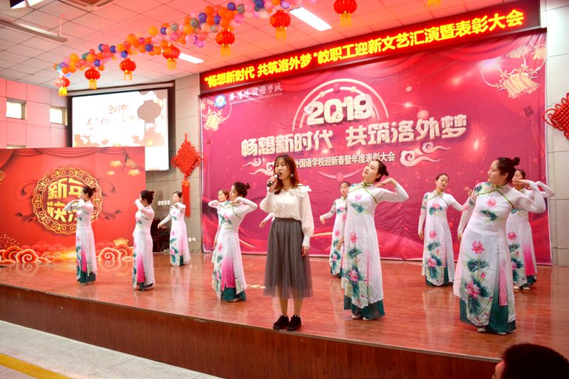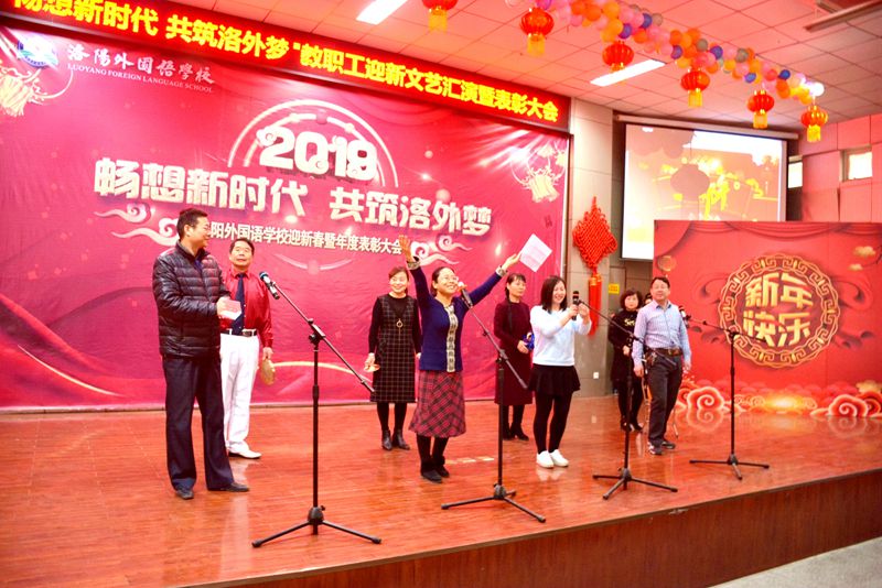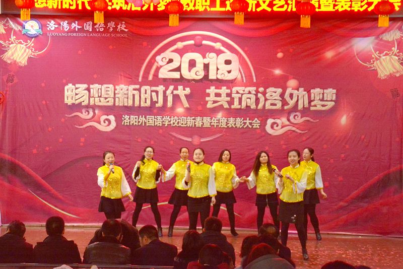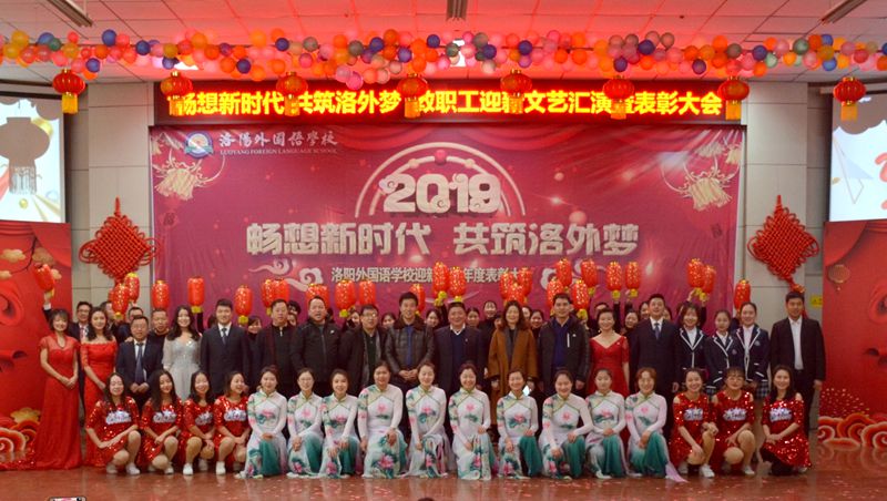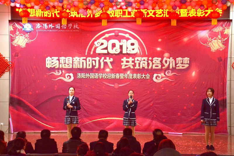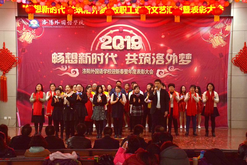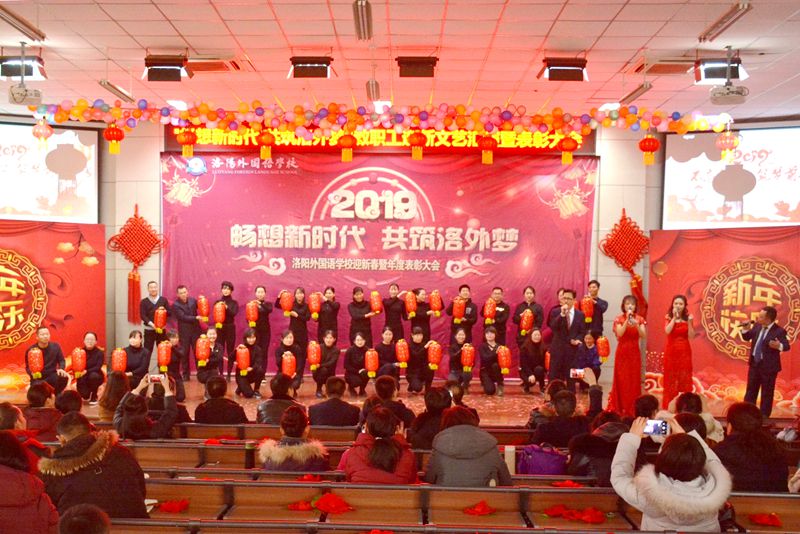 为了在学校树立标杆,弘扬正气,传递正能量,进一步激励全体教师爱校、敬业、勤业、精业,不断推进我校教育事业可持续发展,表达对广大洛外人最诚挚的新春祝福,2019年1月20日上午,洛阳外国语学校举行了“畅想新时代,共筑洛外梦”教职工迎新文艺汇演暨表彰大会,会上表彰了11位2018年度功勋教师以及45位模范工作者,科技楼内流光溢彩、笑语盈盈、暖意融融。