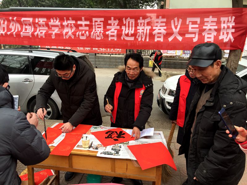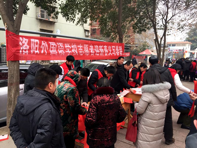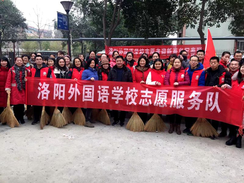 为大力培育和践行社会主义核心价值观,推进学雷锋志愿服务制度化常态化,进一步在全社会营造向上向善、互帮互助的良好风尚,彰显洛阳外国语学校志愿者的爱心奉献精神,弘扬“奉献、友爱、互助、进步”志愿精神,2019年1月28日适逢农历小年,我校六十多名志愿者来到行署社区开展志愿服务。