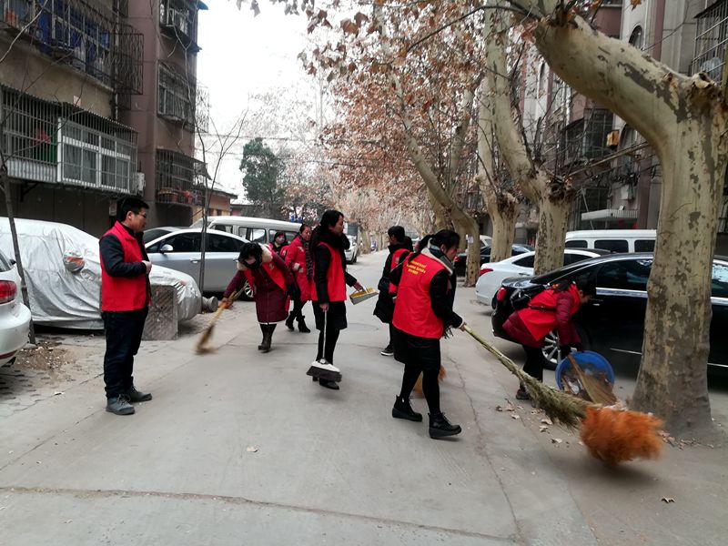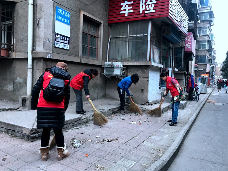 打扫卫生的志愿服务队成员们推着三轮车、拿着垃圾斗、挥动扫把一起打扫卫生,清理树叶、清扫垃圾、铲除墙壁广告、捡拾树枝石块等等,道路两旁、楼前楼后活跃着志愿者的身影。整个劳动过程中志愿者们不怕脏、不怕累,身上落了一层灰尘,大家毫不在乎。志愿者们用实际行动给社区创造洁净环境,传播文明的力量,使群众干干净净过大年。
