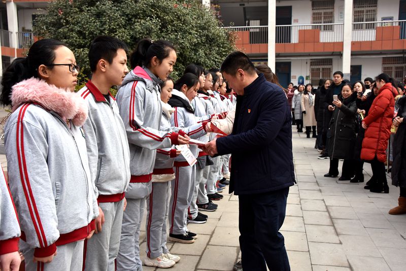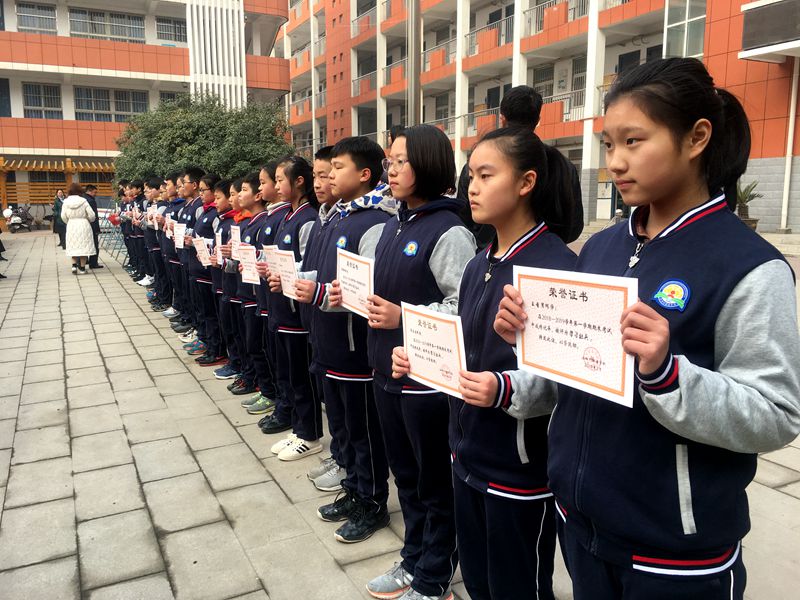 胡伟民副校长、韩昱主任、袁峰主任,先后宣布了2018-2019学年第一学期三好标兵、优秀班干、希望之星、学习标兵、先进班集体获奖名单,齐校长现场为获奖同学和班级颁奖。