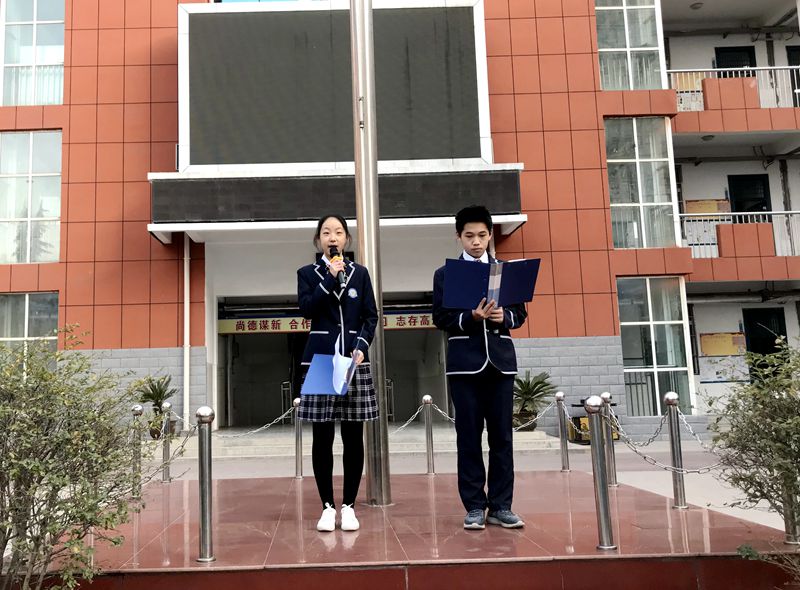 初二17班学生代表进行国旗下演讲,向全校同学发出了“保护环境,美化人生”的倡议。