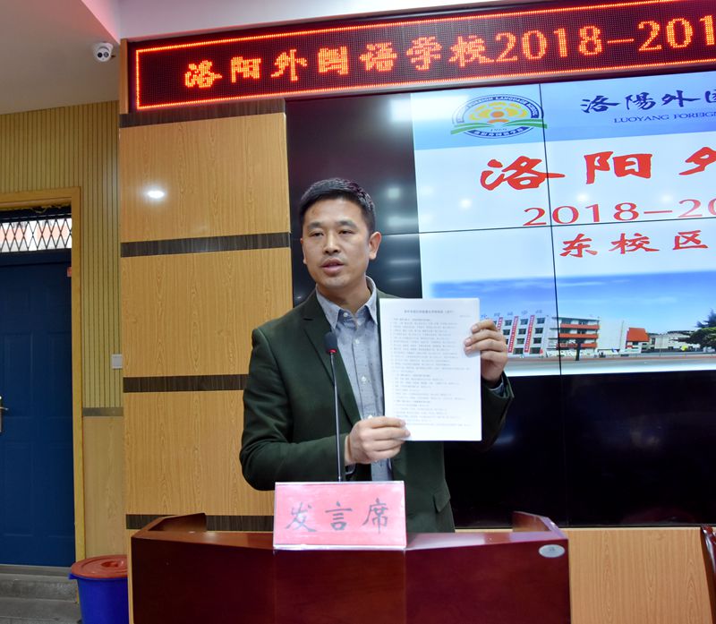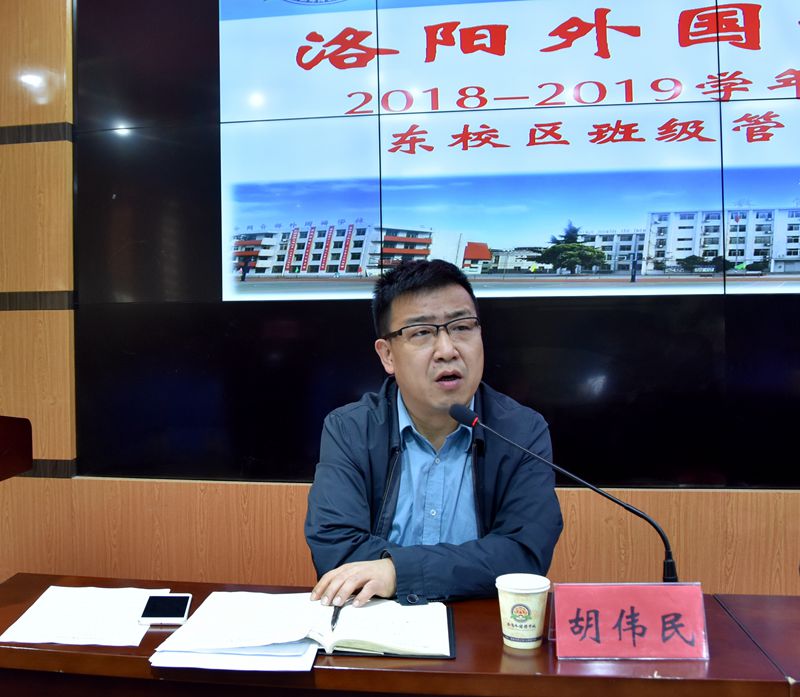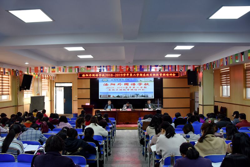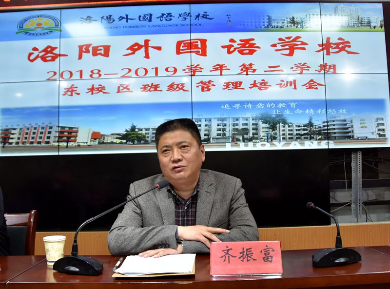 2019年3月19日下午,洛阳外国语学校东校区举办2018-2019学年第二学期班级管理工作培训会。本次培训意在分享优秀班主任班级管理的宝贵经验,反思班级管理中存在的问题与不足,宣布班级管理改进提升方案,统一思想,激发干劲,推动班级管理再上新台阶,再创新佳绩;是东校区落实学校“加强常规管理,打造最严洛外”提升年工作部署的重要举措。党委书记、校长齐振富同志出席会议,并作专题讲话。培训会由校党委委员、副校长胡伟民同志主持。