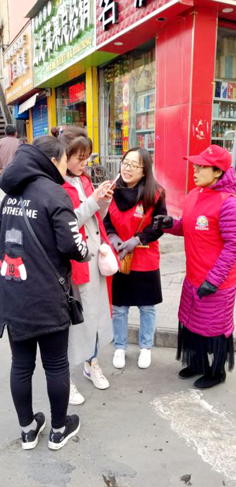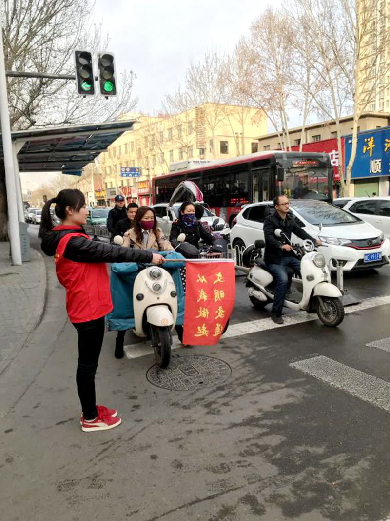 城市道路围挡施工,很多道路改线,当遇到行人问路时,志愿者耐心解答。其中一名女士准备骑电动车到达西工区御博路附近,王慧丽、孙舒层老师建议走凯旋西路到解放路,李露露老师用手机地图告知这位女士具体线路,“谢谢你们,你们平时上课这么辛苦,还来参与文明助交通,辛苦了。”志愿者不时提醒行人注意安全。虽然早上有些寒意,但丝毫没有影响志愿者们的服务热情,在他们的引导下,行人和车辆明显有序。