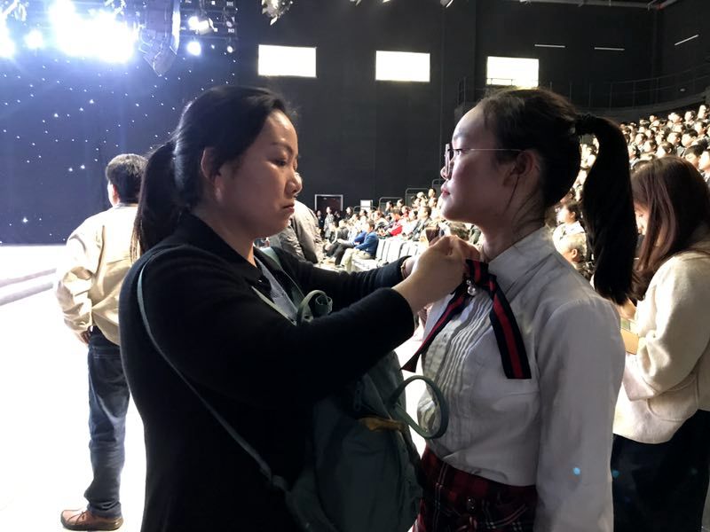 我校高梦然、赵明明、董美娜、宋奕佳、郭亚芳、高梦然、李涵、韩嘉祺、牛伯涵、王晨硕、张梦娇、高志媛等11名高中学生担任礼仪工作,初二年级将近二百名师生参与现场录制,近距离体会了中华美德的强烈感染力!