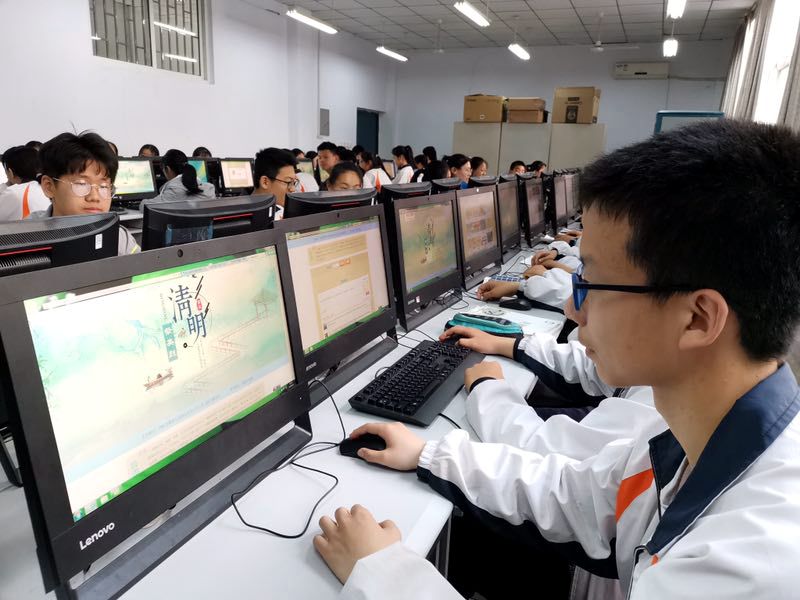 在学校的大力引导下,同学们运用新媒体重温历史,缅怀先烈,以一种绿色环保的祭奠方式寄托哀思。在校团委的组织下,各个班级依次进行网上祭英烈。同学们神情庄严地打开中国文明网,在网页上认真学习了众多英烈的感人事迹后,庄严地为英烈们点烛、上香、哀歌、祭酒,以此来缅怀革命先烈的丰功伟绩。