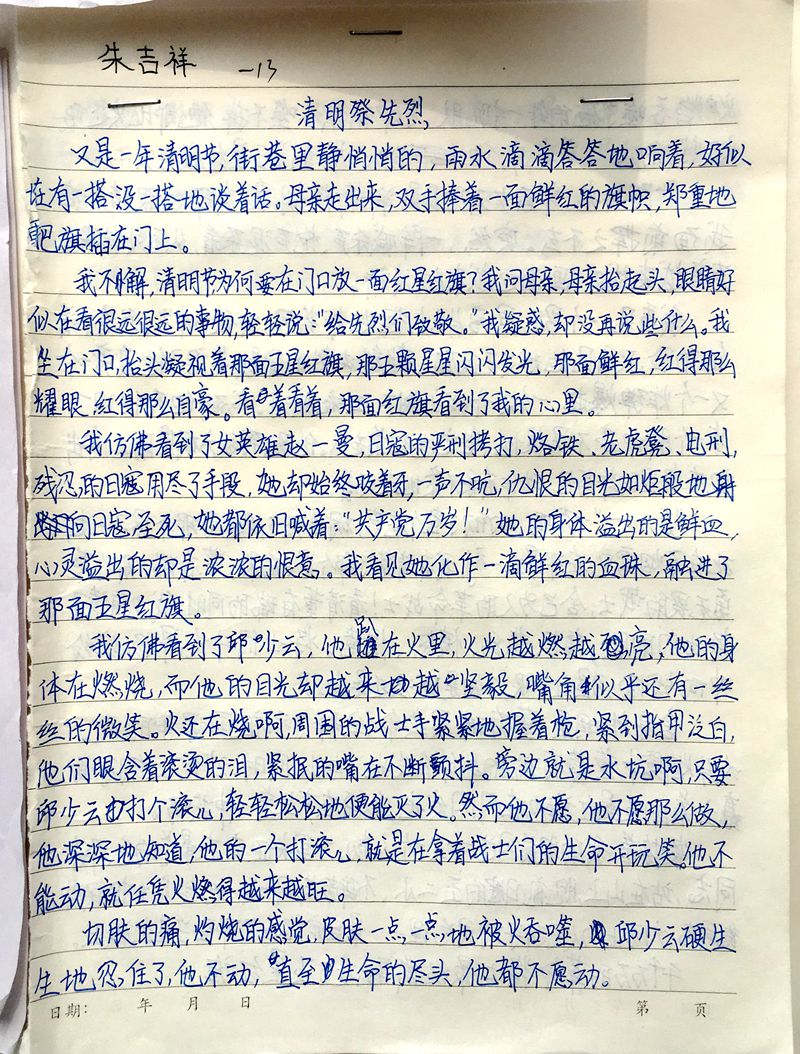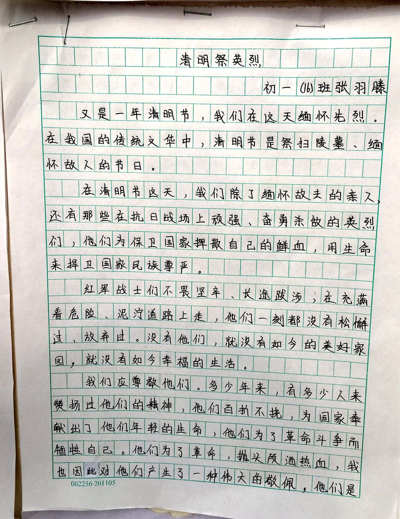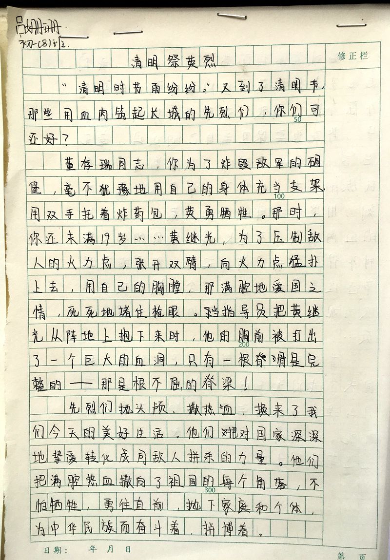 ●“缅怀英烈,励志前行”学生优秀征文展评