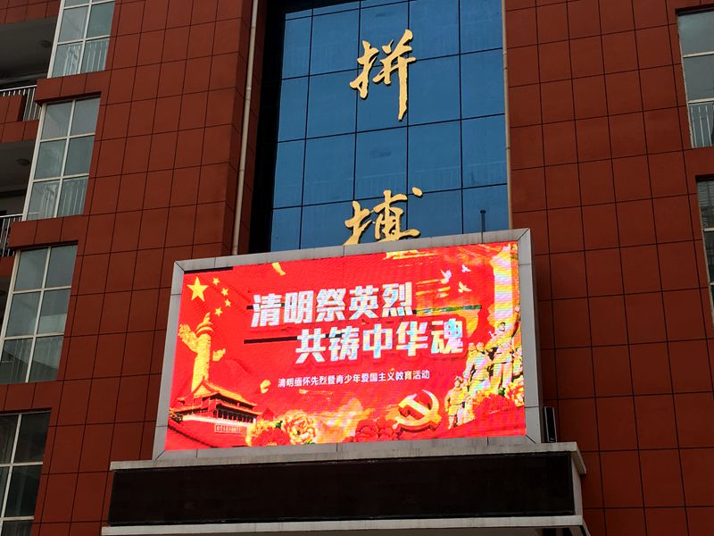 ●“向革命先烈致敬”“继承先烈遗志立志报效祖国”主题标语在校园电子屏上滚动播放,营造出浓厚的活动氛围