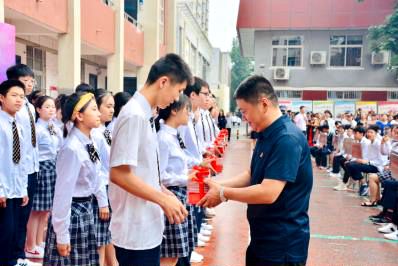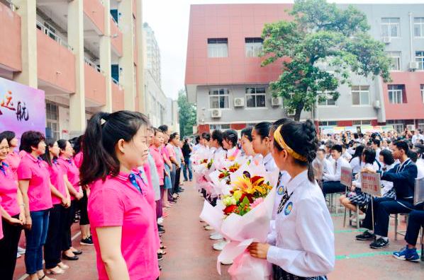 初三年级全体班主任也给予同学们真诚的祝福和美好的期望。学生代表向初三全体教师献上鲜花,表达对授业恩师真挚的谢意。