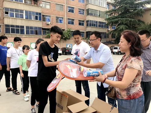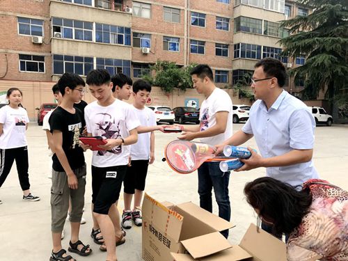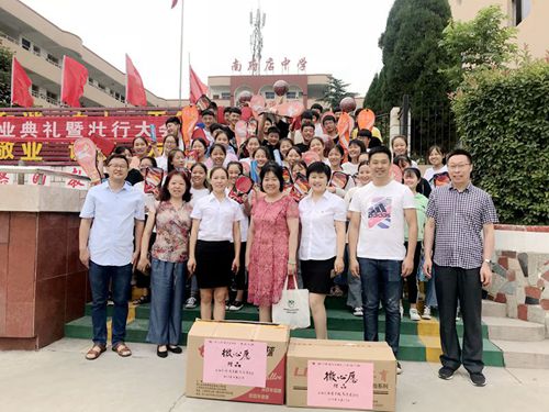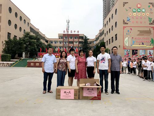 2019年6月27日上午,受学校委托,洛阳外国语学校韩昱主任、张军勇、孟紫千、秦三中、樊玉飞老师一行5人前往伊川县南府店中学看望我校支教老师郭笑玲,并向郭老师所教班级学生赠送了课外读物、文具和体育用品,实现了孩子们的“微心愿”。