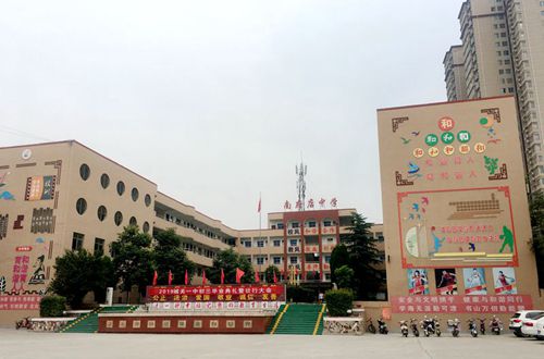 南府店中学是伊川县一所农村寄宿制学校。学生淳朴、阳光,内部管理规范有序。校园干净整洁,环境优雅,处处弥漫着乡村学校特色的文化气息。