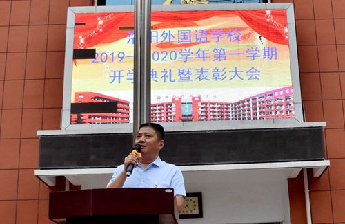 齐校长首先代表学校对新加入洛外大家庭的1100名初一新生表示热烈欢迎,祝愿同学们新学期学业进步!他高度肯定了2019年洛外中招、高招取得的辉煌成绩,对初三毕业班、高三毕业班的全体老师表示衷心的感谢;展望了洛外发展的美好前景,对新初一同学们寄予了殷切希望。齐校长讲话中强调指出:洛阳外国语学校是全市唯一一所公办外国语学校,小语种众多,除英语外还开设有日语、俄语、西班牙语,是一所真正意义上的外国语学校,也是全市最好的初中,全市最具特色的高中。2019年洛外中招之所以能够突飞猛进,创造新高,在公立学校中傲视群雄;洛外高招一本上线人数之所以能够实现新突破,成为全市一本增加人数最多,进步幅度最大的学校,得益于教师的拼搏和学生的刻苦。好成绩都是拼出来的,幸福都是奋斗出来的。还得益于学校的严格管理。打造最严洛外是取得优异成绩的保证,没有严格管理,就没有今天的一切,好学校都是管出来的。更得益于明确的目标。洛外的奋斗目标是:奋力实现强校梦想,让洛外成为洛阳市最好的公立初中,最有特色、最有内涵的公立高中,成为家长和学生向往、神往的学校。最后,齐校长勉励同学们要弘扬洛外精神,自信、自律,志存高远,追逐强校梦想,力求成为最优秀的洛外学子。齐校长的讲话引起全校师生的共鸣,现场掌声不断。