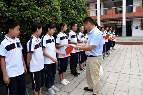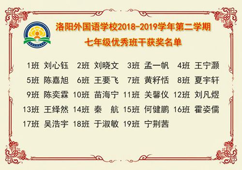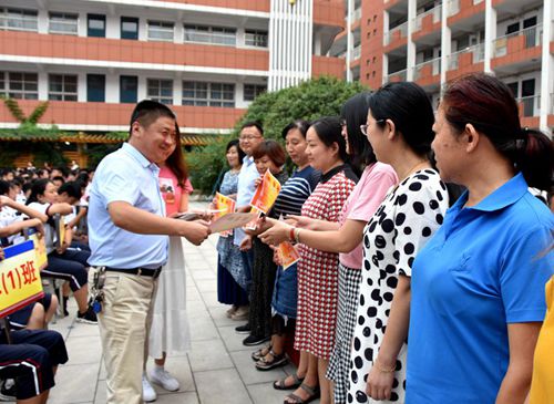 魏成民副校长宣布2018-2019学年第二学期三好学生、优秀干部名单。齐振富校长为获奖班级颁奖。