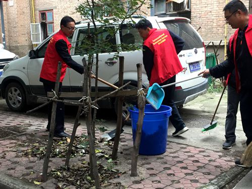 行署路四号院是个老旧小区,整体卫生环境较为凌乱。为改变小区的卫生面貌,魏成民和赵乐平副校长带领我校的40余名志愿者,将劳动任务细化分工,每一栋楼、每个单元的劳动都具体到人。为擦掉单元大门的“牛皮癣”,志愿者们用湿毛巾擦、铲子铲,直到不锈钢楼道门“容光焕发”。地上的落叶,塑料袋堆积陈厚,志愿们纷纷拿起扫把等劳动工具热火朝天的扫起来。有的几名志愿者合力清扫地上的落叶,有的擦灰尘,有的忙着清理地上的塑料袋,力气大的男士忙着清理地上的杂物倒垃圾。经过一个多小时的紧张清扫,家属区的垃圾被清理完毕,道路干净整洁。