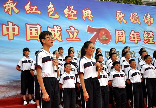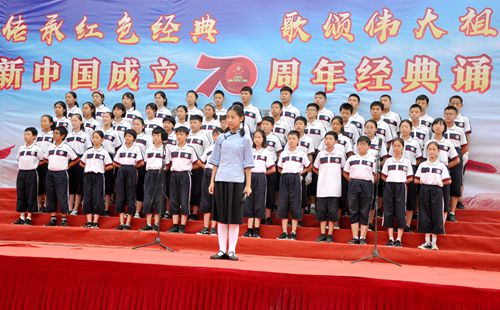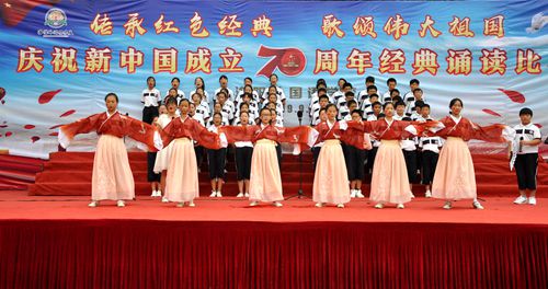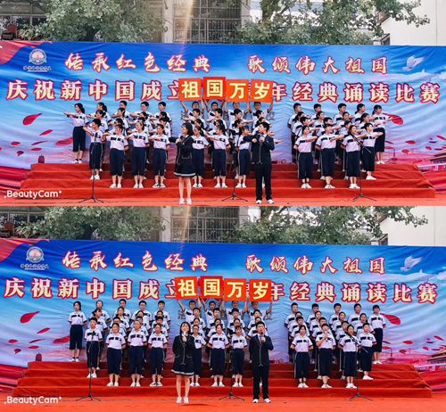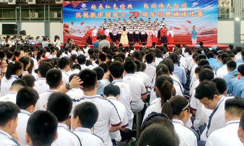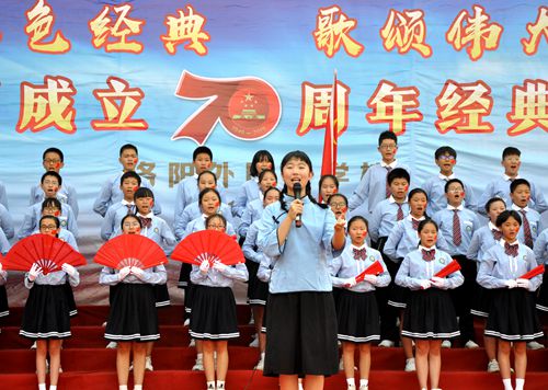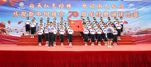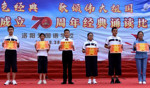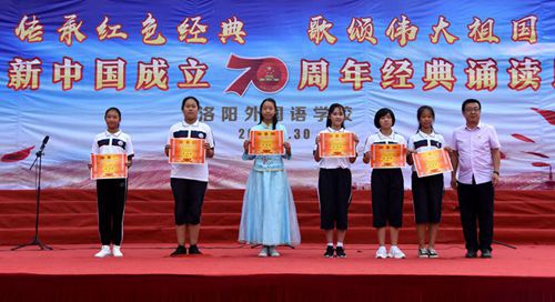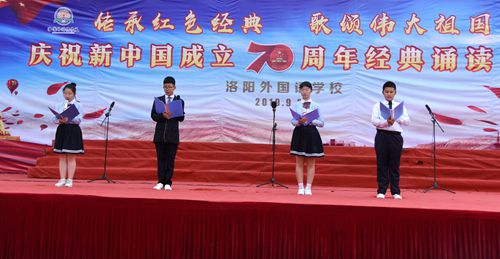 为迎接新中国成立七十周年,以熠熠经典传承奋进精神,洛阳外国语学校于2019年9月29日在东校区举行初一年级经典诵读比赛。