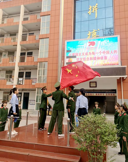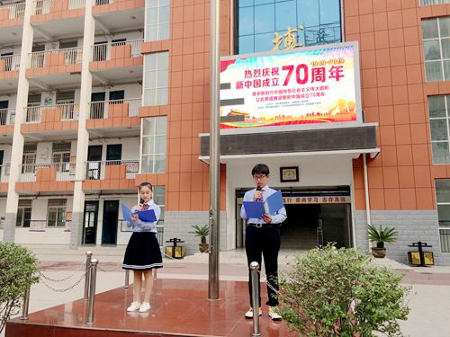 政教处主任韩昱在升旗仪式上介绍了国家“烈士纪念日”相关情况,要求同学们缅怀先烈,懂得珍惜;提醒大家注意观看9月30烈士纪念日纪念仪式转播和10月1日在北京天安门广场举行的庆祝中华人民共和国成立70周年庆祝大会和阅兵式,积极参与社区国庆节庆祝活动,共祝伟大祖国繁荣富强。