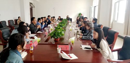俄语课堂结束后,我校和单县一中各位领导、相关老师齐聚会议室进行互动交流。首先,单县一中都校长对该校的发展历史、小语种的办学历史和成就进行了介绍。我校齐振富校长介绍了洛外的小语种办学规模和办学历史。