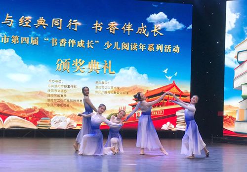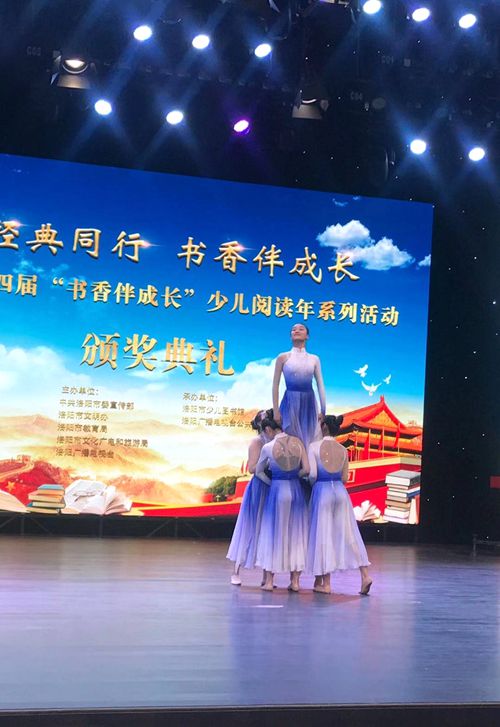 为了贯彻落实党中央、国务院关于开展全民阅读的重要部署和《关于实施中华优秀传统文化传承发展工程的意见》精神,加快构建文化传承创新体系,建设书香洛阳,20191115,在洛阳广播电台二号演播厅举办了由中共洛阳市委宣传部、洛阳市文明办、洛阳市教育局、洛阳市文化广电和旅游局、洛阳广播电视台主办,洛阳市少年儿童图书馆、洛阳广播电视台公共频道共同承办的洛阳市第四届“书香伴成长少儿阅读年系列活动”颁奖典礼。洛阳外国语学校作为获奖单位受到表彰,同时我校为此次颁奖典礼选送初一年级组集体创作经典诵读——岳飞《满江红》和高中舞蹈社团5人组舞蹈《月光》参加此次颁奖典礼的现场演出活动。