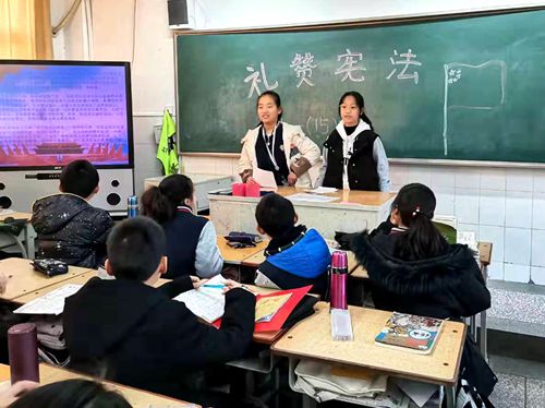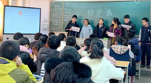 122下午,周一班会时间,东校区组织了“礼赞宪法”主题班会。各班通过主题演讲、小组讨论、代表发言、集体宣誓等方式进行宪法学习宣传活动。同学们畅谈了自己对宪法的认识和理解,讲述了宪法对于自己成长的重大影响,表达了学习宣传宪法,弘扬宪法精神的决心。