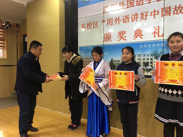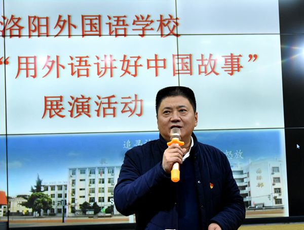 2019年12月30日下午,洛阳外国语学校东校区首届“用外语讲好中国故事”展演成功举办。“用外语讲好中国故事”是洛外践行习近平总书记“讲好中国故事,传播好中国声音”指示精神,深入开展社会主义核心价值观教育的重要举措,也是洛外小语种教学改革的创新之举。本次活动主场和分会场同时进行,全校联动,亮点纷呈。英语、俄语、日语、西班牙语,洛外小语种精彩绽放;演节目、讲故事、练口语、受教育,洛外学子乐在其中。校党委书记、校长齐振富,党委委员、副校长胡伟民、魏成民、刘宏彬、王定国莅临现场观看演出。