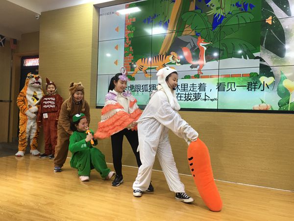 英文版《桃园三结义》、日语版《大话西游》、西语版《狼来了》、英文版《守株待兔》、俄语版《三借芭蕉记扇》、英文版《嫦娥奔月》、英语版《孟母三迁》、英文版《花木兰》、俄语版《神笔马良》、日语版《王小二》…… 用外语重温一个个耳熟能详的中国故事,令人耳目一新,不仅激发了同学们的民族自豪感,也提高了外语口语表达交流能力,拓宽了同学们的国际视野。