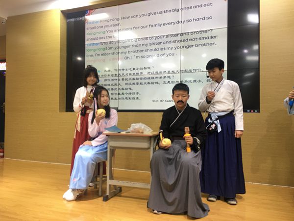 同学们用“外语”演绎着“中国故事”,阐述着对中国文化的理解。创意独特,口语流畅,表演惟妙惟肖,或庄重高雅,或幽默滑稽,或悲壮刚烈。不同的故事,别样的主题,中华优秀传统文化在表演中根植心田,润泽心灵。不同的语种,别样的风格,外语水平在实践中提升。