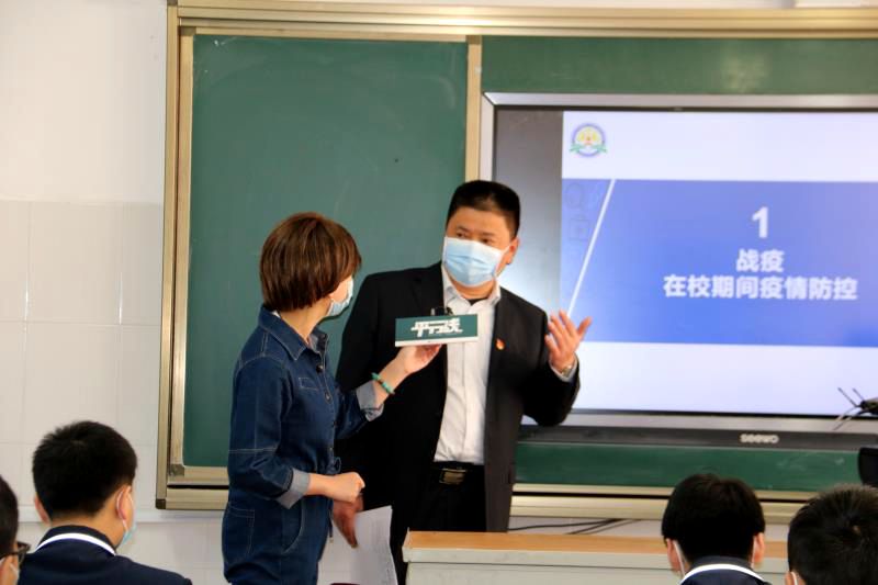 市教育局机关党委常玉军主任和市实验小学潘建龙副校长代表市教育莅临指导我校初三年级开学返校工作,实地了解我校作为完中在疫情防控上的具体措施及落实情况。