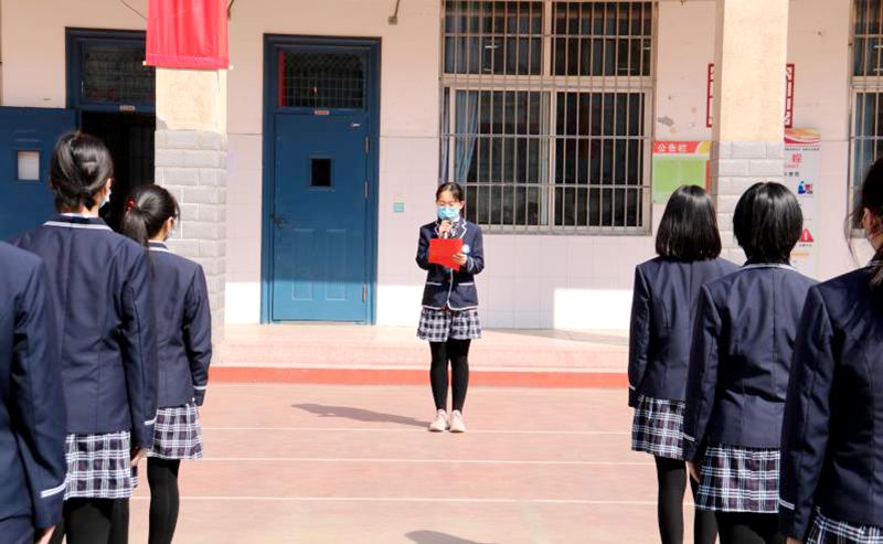初三学生代表10班霍鸣轲同学进行了发言。她在讲话中表示,新冠疫情虽然影响了学校的正常教学生活,但是没有改变洛外学子的爱国初心,夺取中考胜利的信心!