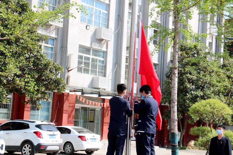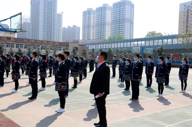 上午10:00和下午15:00“开学第一课”从简朴肃穆的升旗仪式开始。各班学生代表、初三年级全体老师、全体行政人员在操场上整齐列队,其余同学在班级里同步进行。
