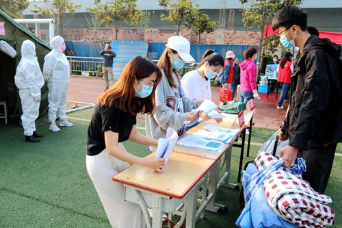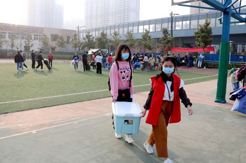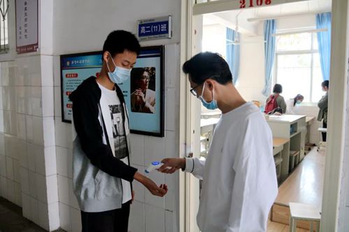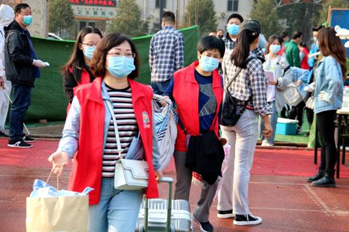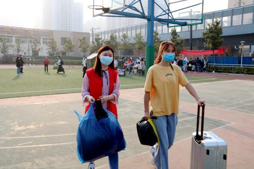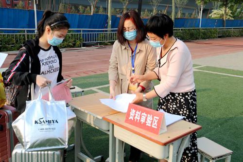 2020年5月6日上午,洛阳外国语学校高一、高二年级学生在离开学校3个多月之后重返校园。早晨七点钟不到,校领导及各班班主任、志愿者教师已经来到校门口准备好迎接同学们。7点半开始,学生开始陆续返校。同学们有序排队,依次经过物品消杀、测量体温、资料查验后进入校园。住宿同学携带的行李经消毒后由志愿者教师协助运往宿舍。每一个环节都一丝不苟,每一个细节都严格遵循要求。
