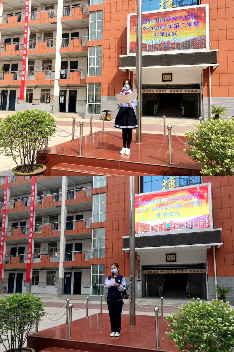 学生代表初二(10)班苗海宁同学、初一(9)班张家宁同学呼吁同学们,在今后的学习中,要坚定信念,不惧困难,扬起高帆,共同拼搏,展现青春最美的姿态!