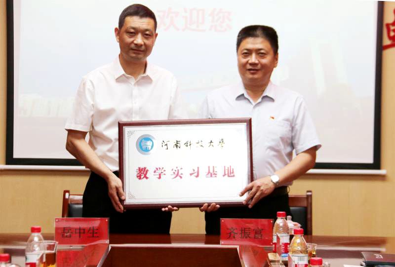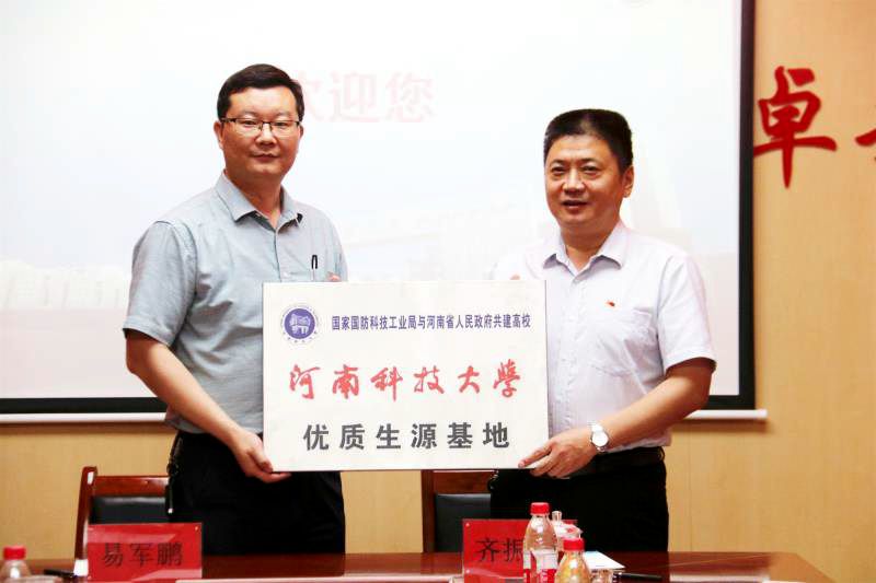 2020527,河南科技大学优质生源基地暨河科大外国语学院教学实习基地授牌仪式在洛阳外国语学校举行,河南科技大学招生就业处处长易军鹏、外国语学院副院长岳中生、外国语学院副书记张根成、后勤管理处副处长张清波莅临我校授牌,洛阳外国语学校党委书记、校长齐振富,副校长项伟、魏成民、胡伟民、赵乐平、王定国参加。副校长王定国主持授牌仪式。