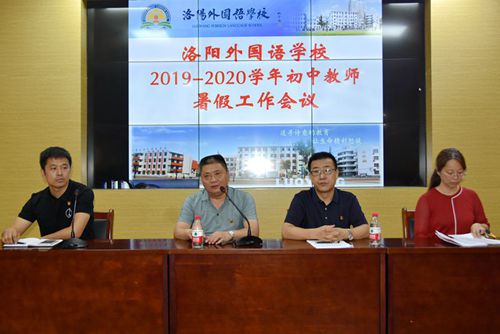 党委委员、副校长胡伟民同志对初中部全体教职员工传达了《洛阳市教育局关于做好2019-2020学年期末及暑假工作的通知》及《洛阳市新冠肺炎疫情防控指挥部的通知》。胡校长向大家明确了我市中小学暑假放假及新学期开学时间,对放假前的教育教学工作做了总结,同时要求各任课教师在假期要认真学习课程标准、刻苦钻研教材,提前备好两周课。根据疫情防控指挥部的要求,要做好暑假期间疫情防控工作,严格执行“日报告”、“零报告”制度。