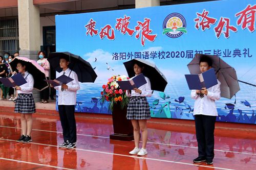 2020年7月17日上午8时,洛阳外国语学校在雨中举行2020届初三年级毕业典礼,齐振富校长,胡伟民、王定国、魏成民、刘宏彬、项伟、赵乐平等副校长出席,全体初三师生,200余名家长代表冒雨参加了此次毕业典礼。