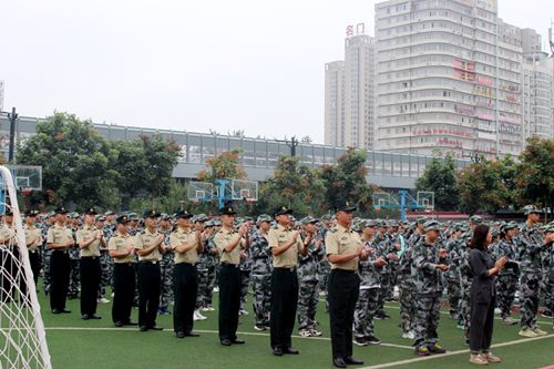 齐振富校长作重要而简短的讲话,他对六百名新生表示热烈欢迎,也对担任本次新生军训教练任务的96784部队全体官兵表示衷心的感谢,同时对新同学良好的精神面貌提出了表扬。