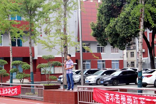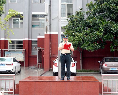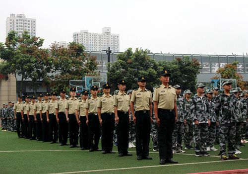 然后政教处胡光辉主任向各班介绍了负责军训任务的教官,并与各班主任进行认识。胡光辉主任对参训的学生,提出了军训的要求以及注意事项。