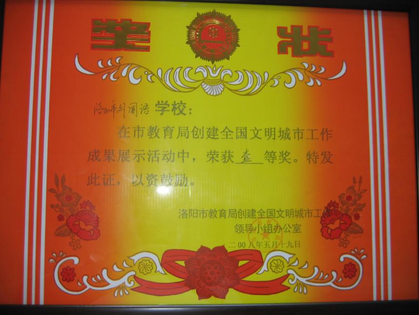 为展示全市教育系统创建全国文明城市成果,5月17日到19日,市教育局举办了教育系统创文工作成果展览。本次活动共参展69个单位,市教育局专门抽调专业人员,进行了认真细致的评比,评出一等奖7个,二等奖8个,三等奖21个,并颁发了奖状。我校创文工作在以唐校长为领导的校级领导班子直接领导下,开展了扎扎实实,认真细致的工作,在这次创文工作成果展示评比中喜获一等奖。此次获奖必将推动我校两创活动的深入开展。