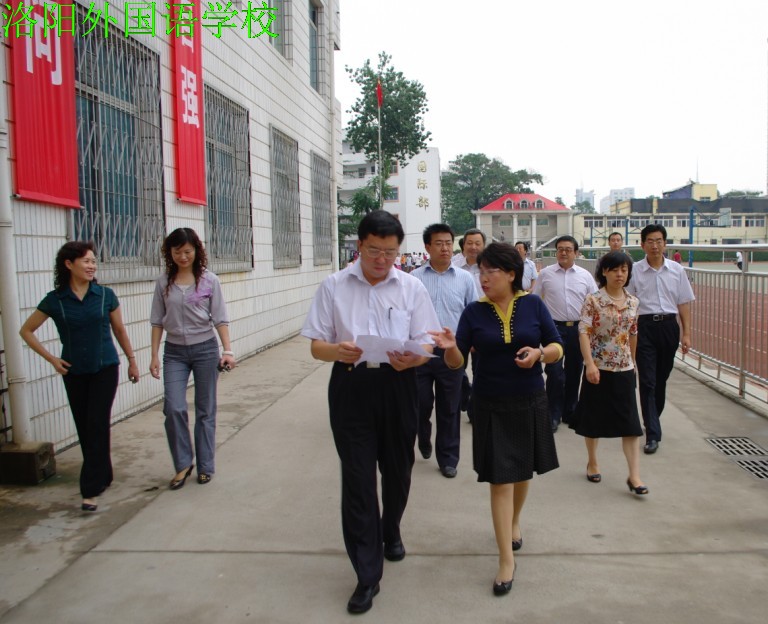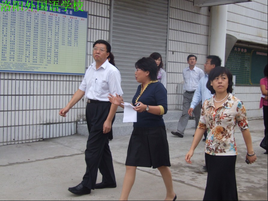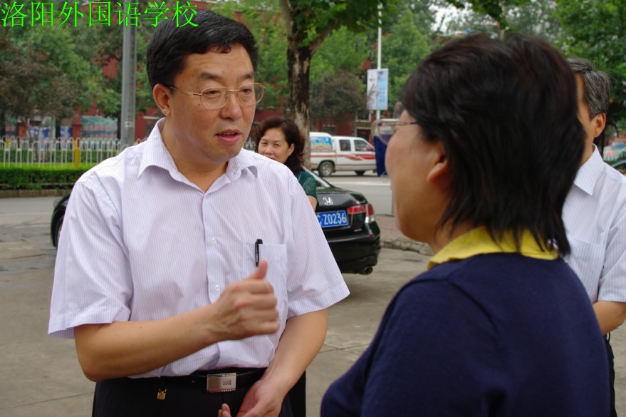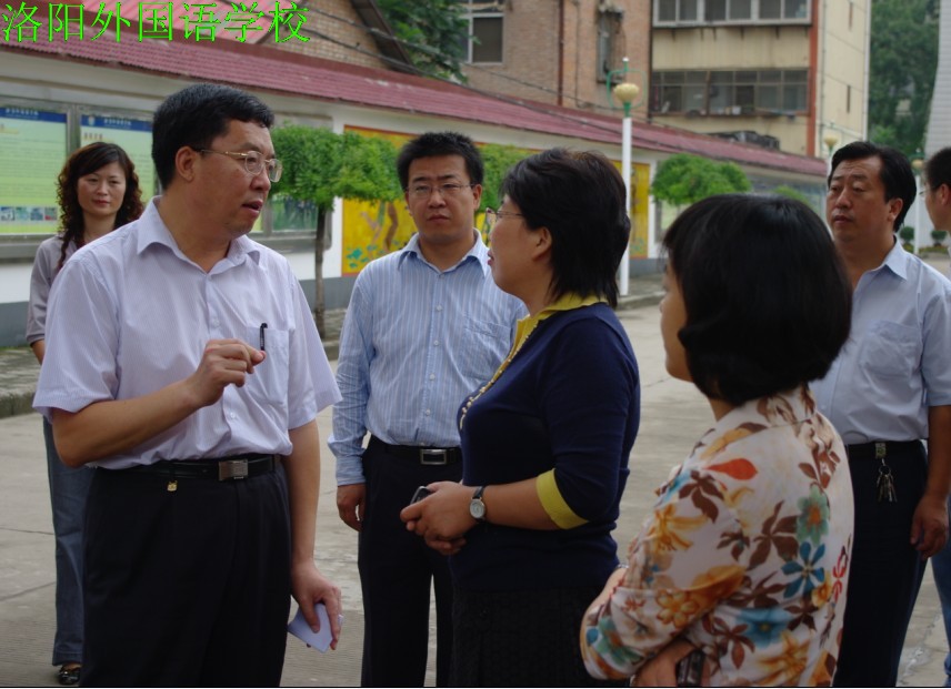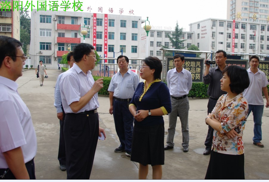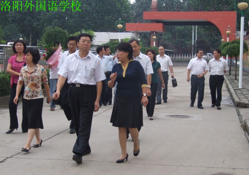 2010年9月7日下午,连续下了两天的小雨停止了,天空放晴,洛阳外国语学校迎来了尊贵的客人。下午4:00许,省委常委、洛阳市委书记毛万春在副市长杨萍、市委秘书长尚朝阳、教育局长侯超英、副局长刘雪娟、郑志敏等一行的陪同下,视察了洛阳外国语学校,看望了国际级骨干教师、河南省特级教师、洛阳市优秀专家裴素青校长,并通过裴校长向全体教师致以教师节的亲切问候。 视察期间毛书记听取了裴校长关于洛阳外国语学校近年来的发展状况以及目前在办学过程中的困难。毛书记对学校的特色教学给予了充分肯定,同时也表示将会尽最大努力,为洛阳教育的发展做好后盾,为外国语学校的发展提供帮助。 视察后,裴校长召开了部分老师座谈会,转达了毛书记对大家的问候和期望,老师们深受感动,表示一定努力工作,为洛阳的教育事业努力工作,不负市委、市政府及教育局的厚望,把洛阳外国语学校办成与国际接轨的全国一流外国语学校。