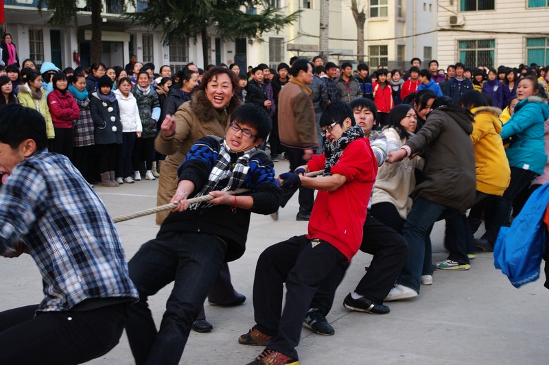 我校为了活跃师生生活,加强体育锻炼,积极组织师生开展冬季室外体育活动,认真做好大课间师生长跑活动及其他体育比赛,继高中篮球比赛后,于2010年12月27日起举办迎双节师生拔河比赛。