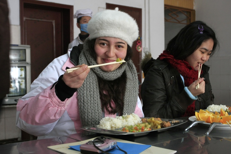 17日下午,由北京人民广播电台主办的“全球外国人汉语才艺大赛”获奖选手文化体验团一行来到洛阳,与洛阳外国语学校的学生进行了文化交流活动,同学们向获奖选手们赠送了纪念品,与他们进行了联欢,并一同在学生餐厅就餐。通过交流,使选手们开阔了眼界,感受了中国不同地区的文化氛围,用心体会了中国文化的博大精深,进一步认识了中国文化的多元性,加深了选手们对九朝古都和洛阳外国语学校的了解,他们表示非常喜欢洛阳这座美丽城市,非常喜欢热情好客的洛阳外国语学校师生。