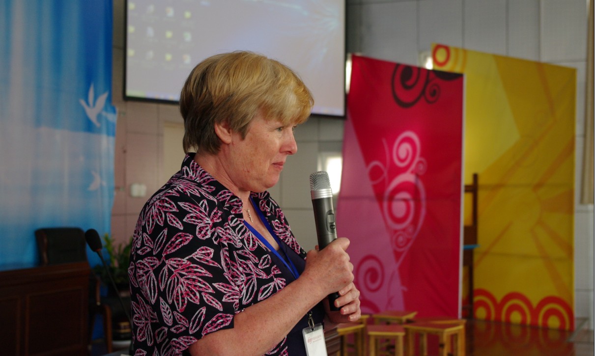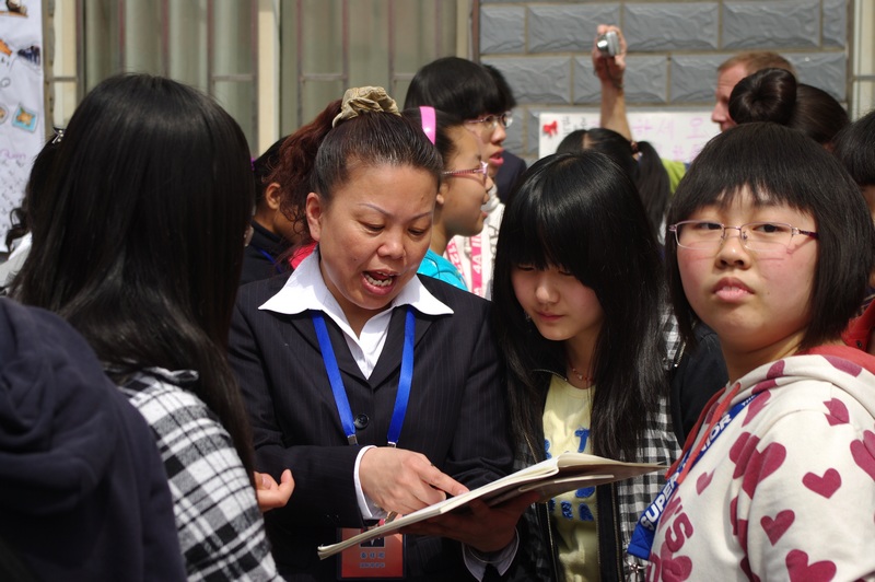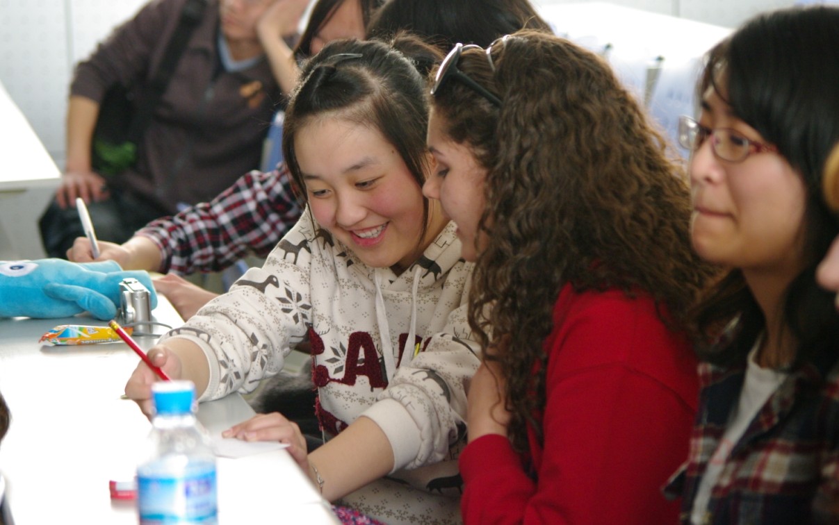 我校学生与访问团互相交流英国老师讲话