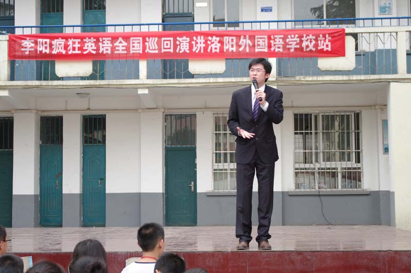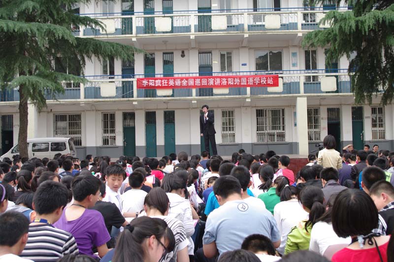 5月12日,李阳疯狂英语全国巡回演讲来到我校。张鑫老师激情的演讲让同学们受益匪浅,更加坚定了同学们学好英语的决心。他说:“兴趣是最好的老师。学好英语,首先要注意发音,可以通过听磁带跟着模仿来提高。”他十分强调动口对于英语学习的重要性,“英语水平的好坏,取决于嘴巴动的次数。”