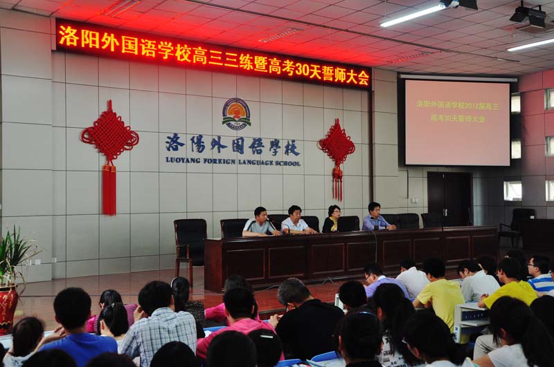 5月9日下午,高中部在科技综合楼举行高三三练暨高考30天誓师大会。会议由项伟副校长主持,高三学生代表和教师代表白红旭作了大会发言。会上,裴素青校长为高三学生作了如何应对高考的专题讲座,用最新的备考理念,最实用有效的方法,向学生讲述了最后30天在复习过程中应该注意的事项,并向即将走上考场的同学们分发了象征幸运的棒棒糖。最后,全体高三学生庄严宣誓,一定在最后的30天,坚持不懈,顽强努力,做好密集训练,以最饱满的热情,最坚定的信念迎接高考。