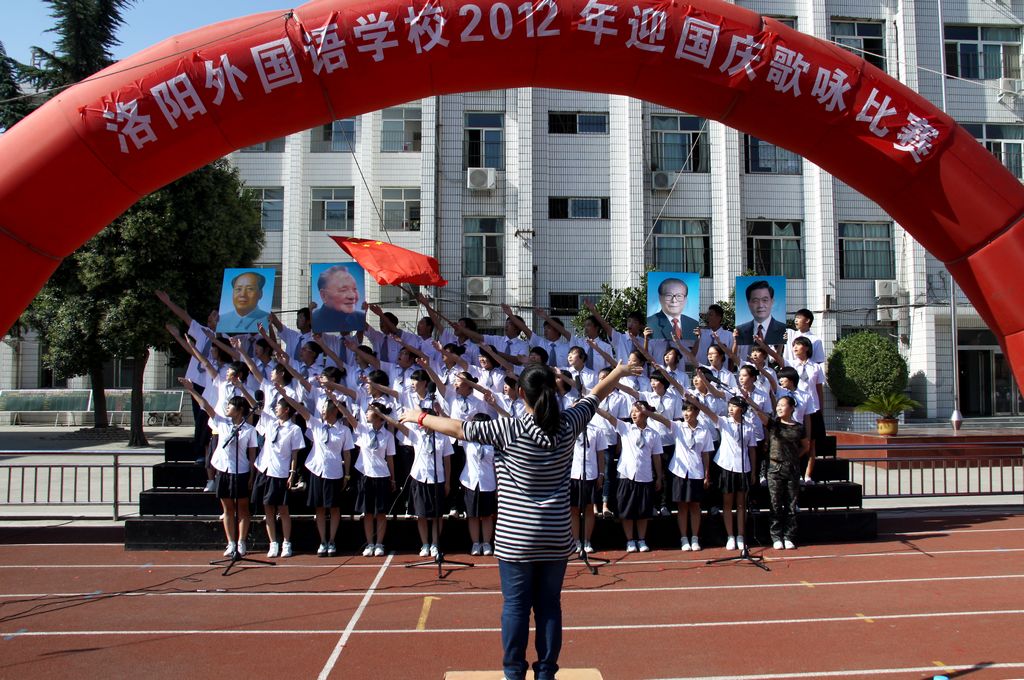 外国语学校为丰富校园文化生活,激发学生的爱国热情,在祖国63岁华诞到来之际,特举办了“唱红歌,颂祖国”的大型合唱比赛。