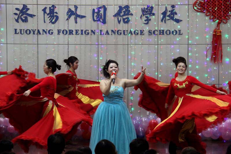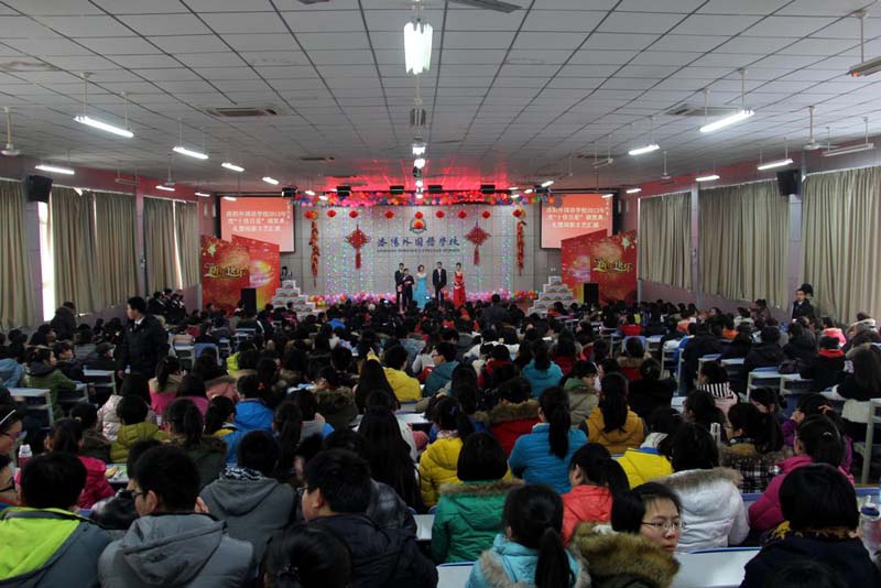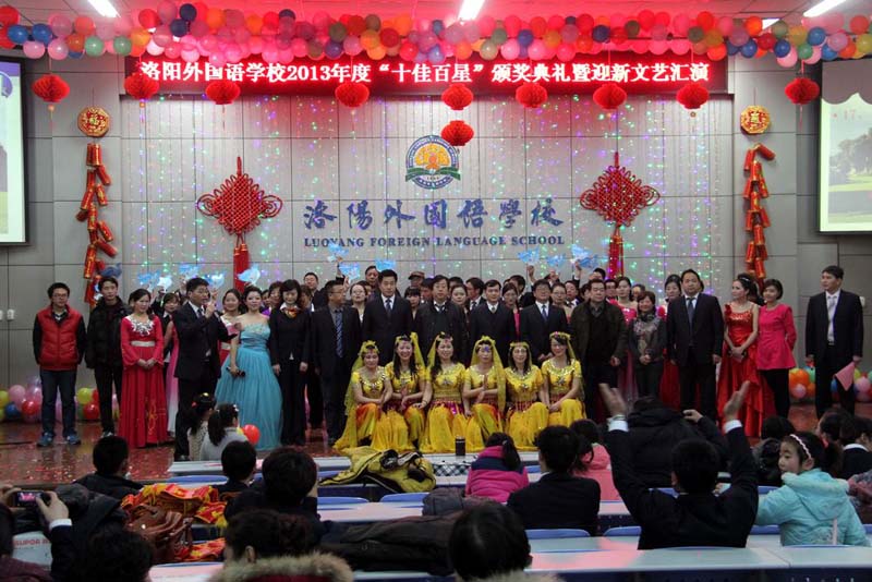 2014年1月15日下午,洛阳外国语学校迎新文艺汇演正式拉开帷幕。段校长首先向全体师生致新年贺词,祝愿老师们在新的一年身体健康,万事如意!老师们自编自演节目丰富多彩,歌伴舞、小品、合唱、现代舞等等,贴近老师们生活的表演迎来了大家阵阵掌声,有些老师在节目中展现的水平堪称专业,令人折服。