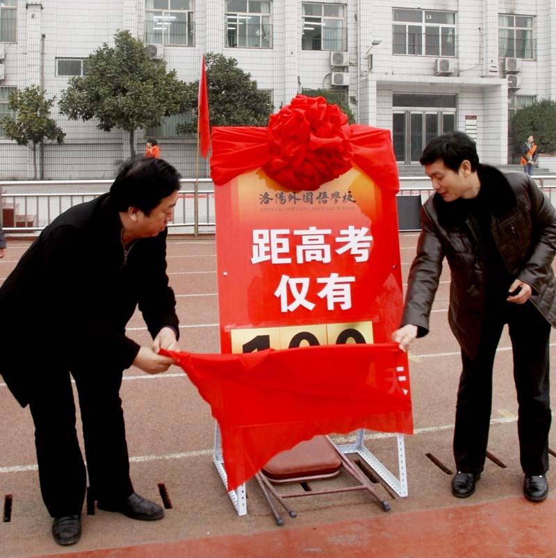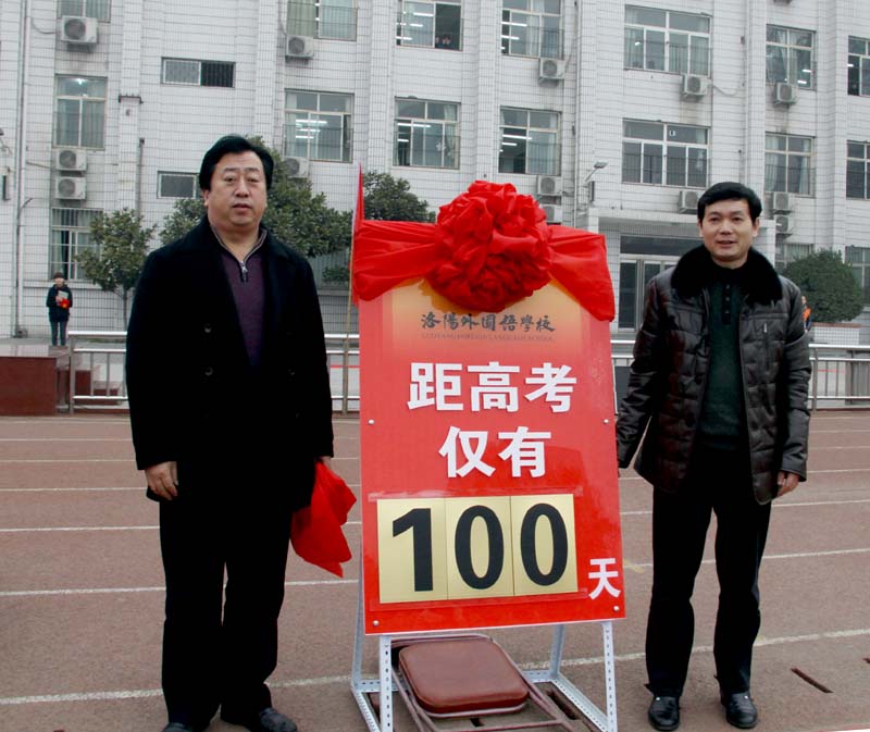 二月二十六日,距2014年高考整整一百天的日子,洛阳外国语学校段华松校长带领学校领导班子成员与高三年级全体师生及学生家长,举行了 2014届高考“百日冲刺”誓师大会,为高三学生百天冲刺助威、壮行!回首过去的岁月,有多少个日子,你们闻鸡起舞,琅琅书声,唤起日出东方,你们披星戴月,奋笔疾书,换来如水年华。宝剑锋自磨砺出,梅花香自苦寒来。物竞天择,适者才能生存。 在这最后的一百天里,洛外高三的全体师生坚定信念、众志成城,乘长风、破巨浪,奋力一搏。一百天弹指一挥间,洛外优秀的学子,让我们珍惜这最后的一百天,奋斗一百天!用你们的激情成就美丽的梦想,高考勇者,舍我其谁!让青春激荡,让梦想起航!今朝刻苦练,明日凯歌还。学校领导、老师以及家长与你们一起并肩走在实现梦想的路上,并为你们送上最真诚的祝福:“百日决胜负换来笑逐眼开,六月定乾坤赢来金榜题名。”