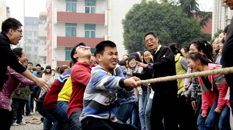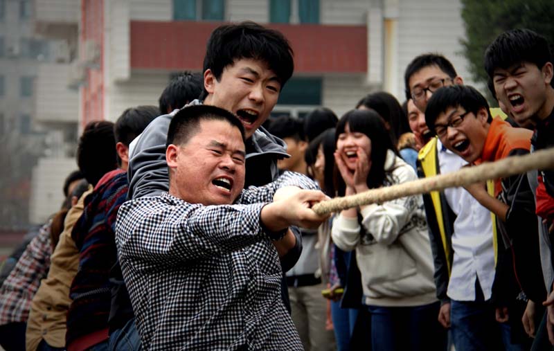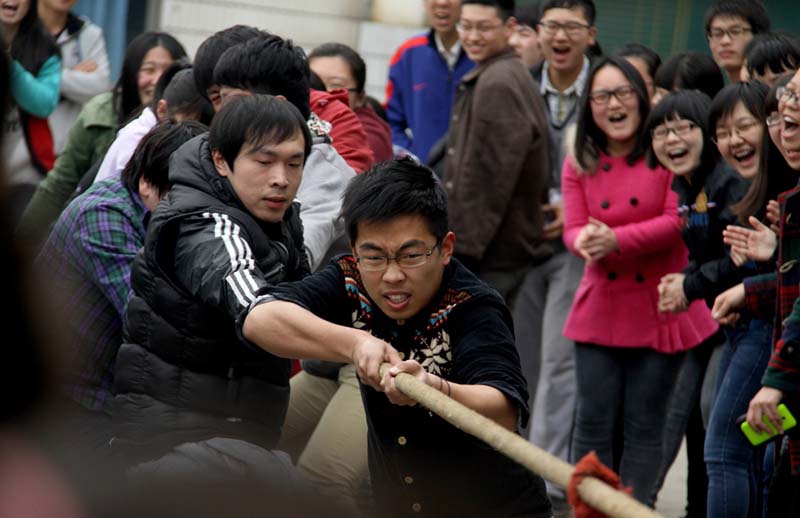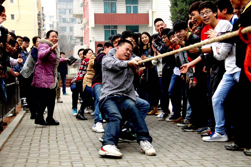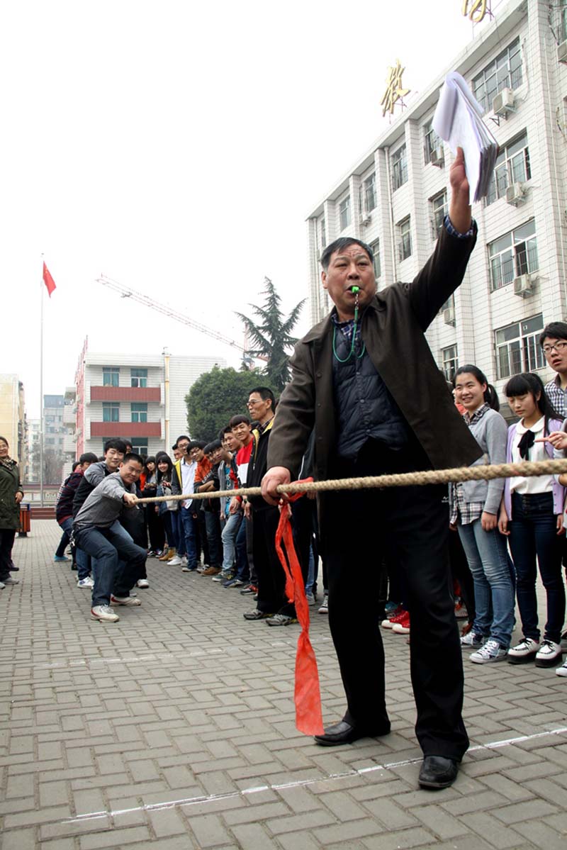 为振奋学生士气,调节枯燥、紧张的学习生活,以饱满的精神面貌迎接市高三“二练”考试。在政教处、体育组的精心组织下,3月20日下午第三节课,我校举行了高三年级学生拔河比赛。比赛要求每个班派出7男8女共15名学生,班主任必须参赛。比赛现场,参赛队员斗志昂扬,勇于拼搏,心往一块想、劲往一处使,为了集体的荣誉谁也不甘心拉下;啦啦队员呐喊声震耳欲聋,加油声此起彼伏。整个比赛过程紧张、激烈、有序,赛场上到处洋溢着团结拼搏、勇者无敌的气息。经过角逐,高三(7)班、高三(3)班、高三(1)班、高三(2)班分获第一至四名。拔河比赛丰富了高三学生的课余生活,活跃了校园文化气氛,进一步增强了班级凝聚力和向心力,展现了我校高三学子锐意进取、团结合作、奋发向上的精神风貌。