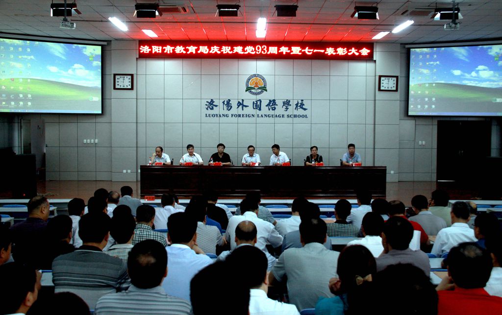 2014年6月30日上午,洛阳市教育局组织教育系统领导干部在洛阳外国语学校科技楼召开了庆祝建党93周年暨七一表彰大会,参加会议的领导有洛阳市教育局局长侯超英、副局长韩经权、尤永政等,以及市属中学校长100多人。